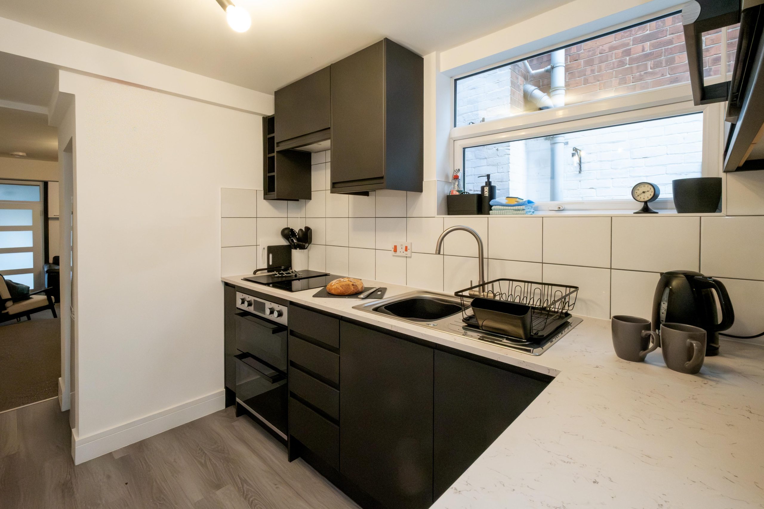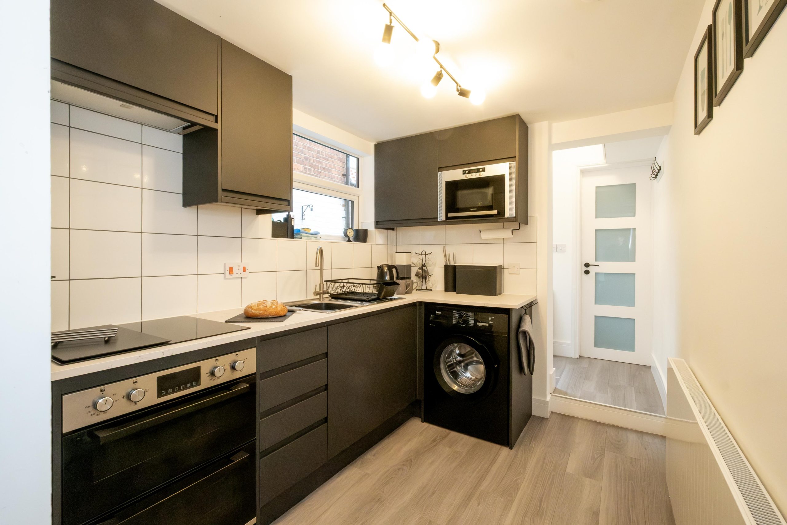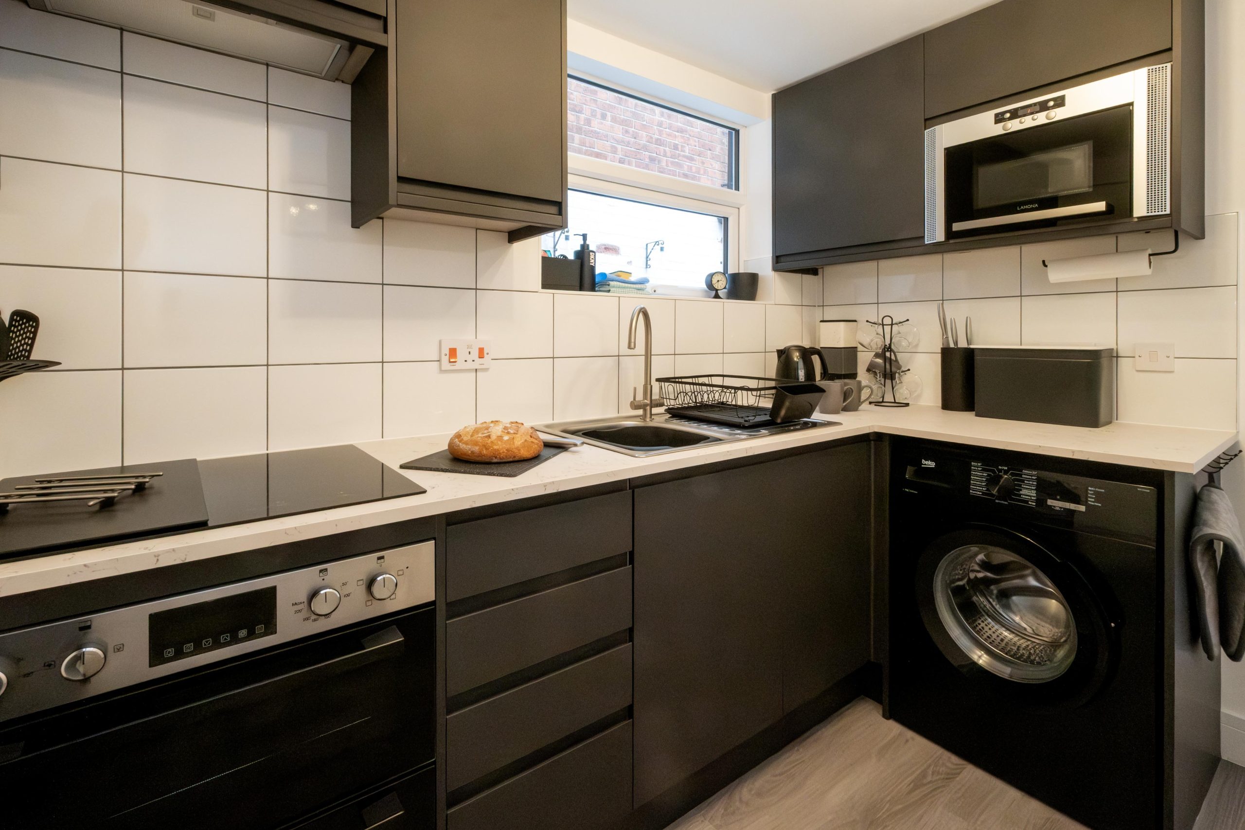 Kitchen: Washing machine, oven, induction hob, microwave oven, fridge freezer, toaster, electric kettle