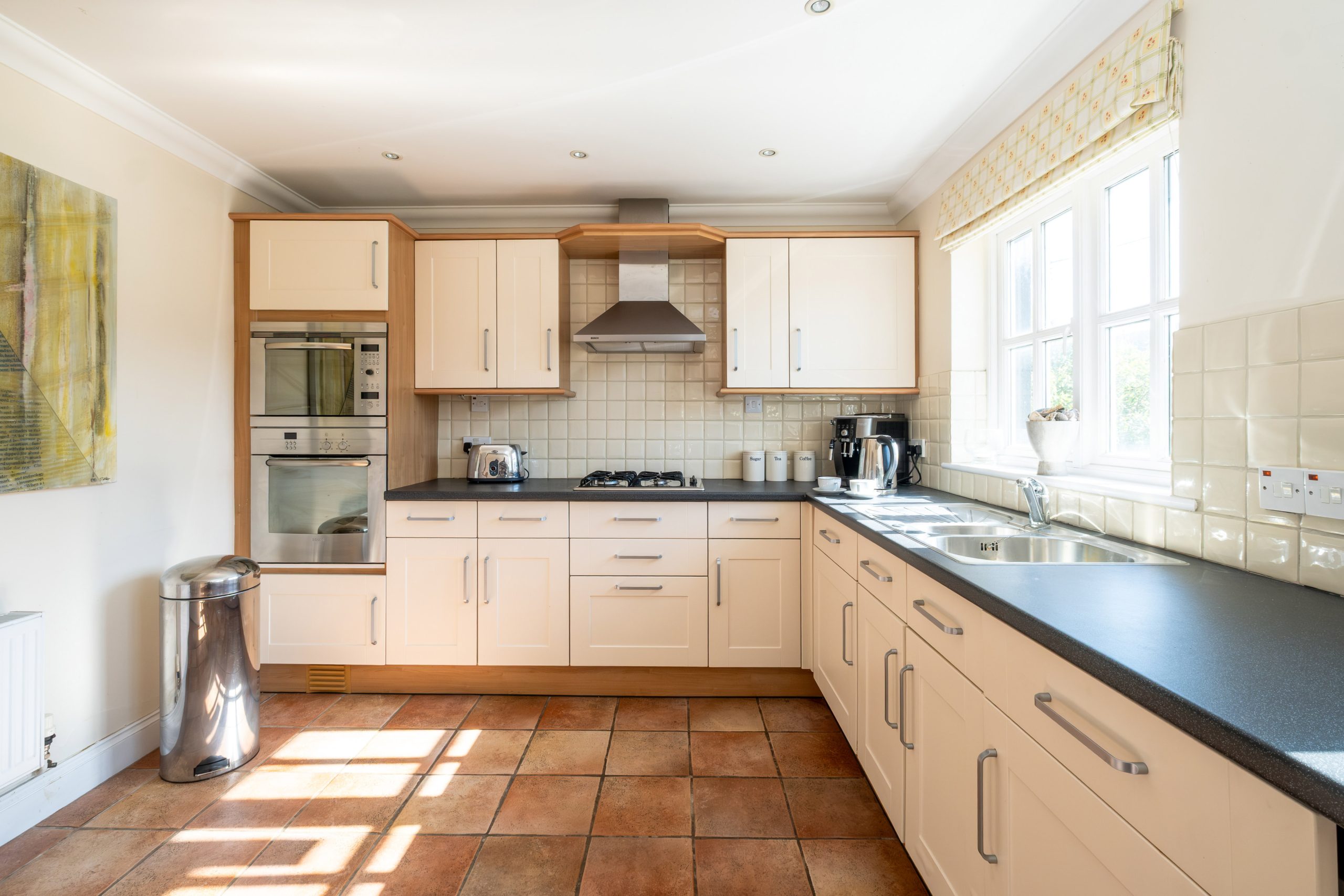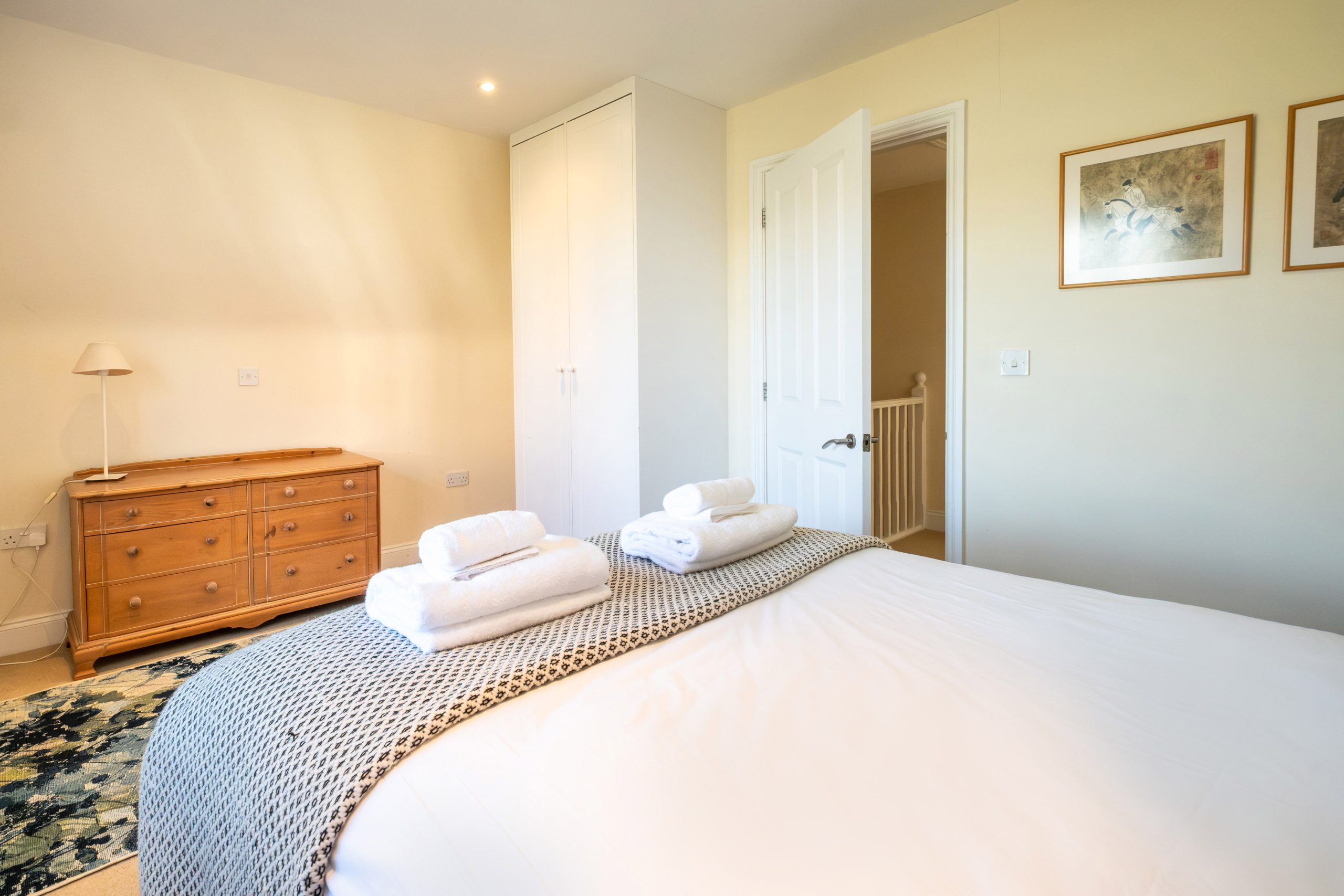 Furnished to a very high standard, this dog friendly house offers a spacious sitting area, a well equipped kitchen and a dining area on the ground floor. Upstairs you will find 3 well placed bedrooms and 2 bathrooms including one ensuite to master bed.