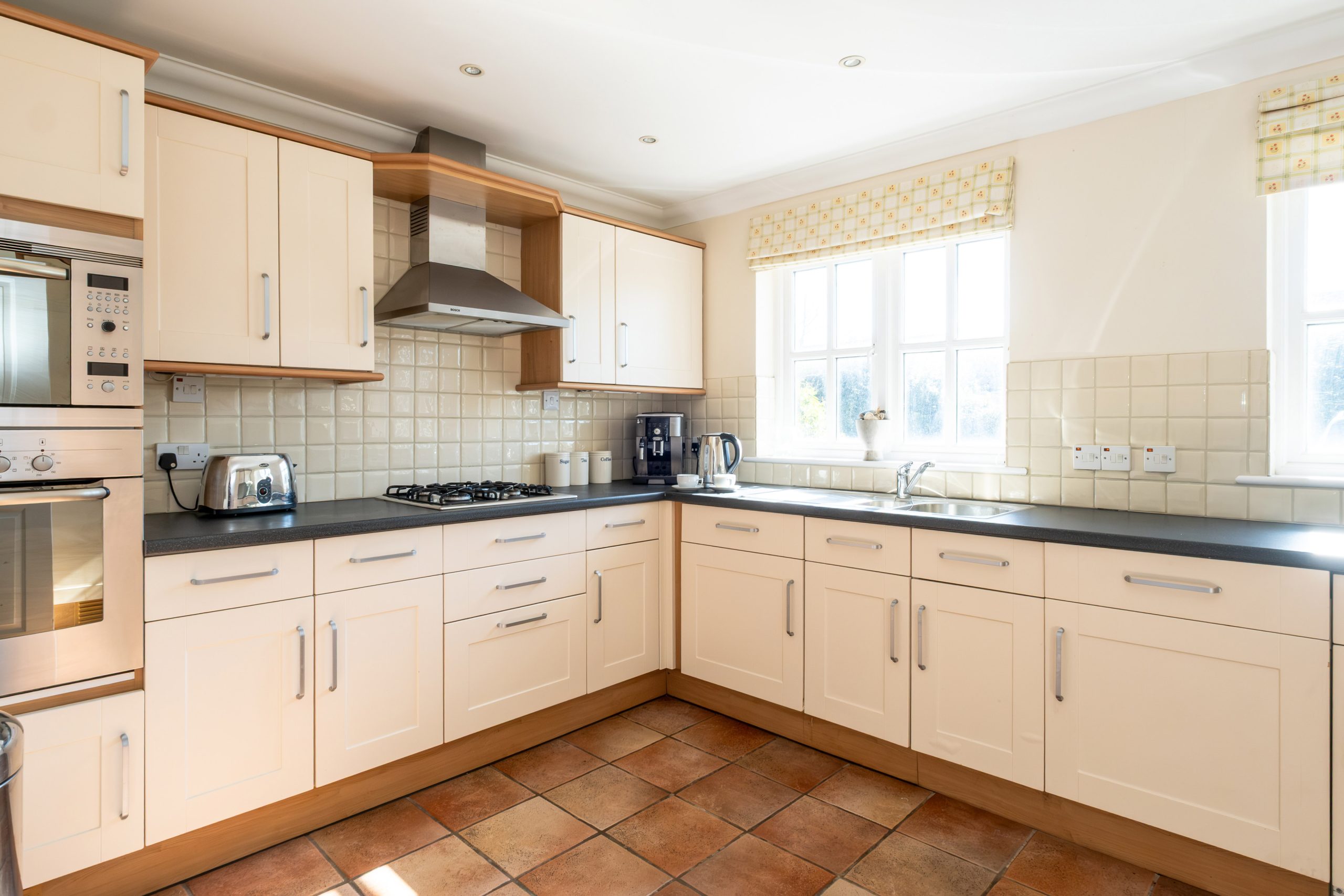Kitchen: Dishwasher, washer/dryer, gas hob, electric oven, fridge/freezer, microwave