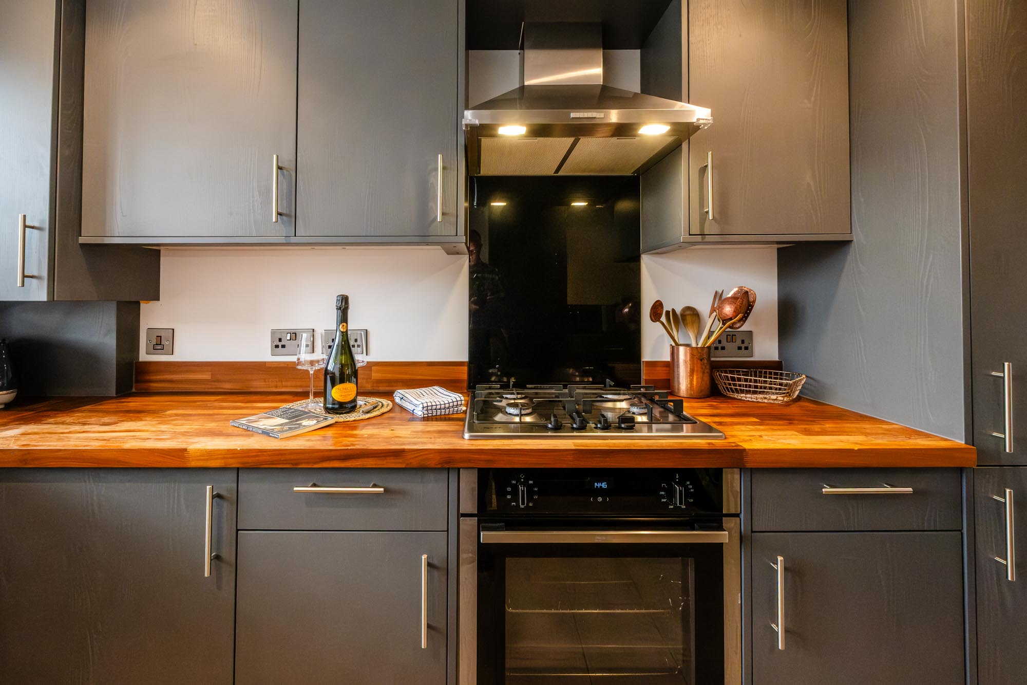 Hob and cooker, fridge/freezer, microwave, dishwasher, washer/dryer