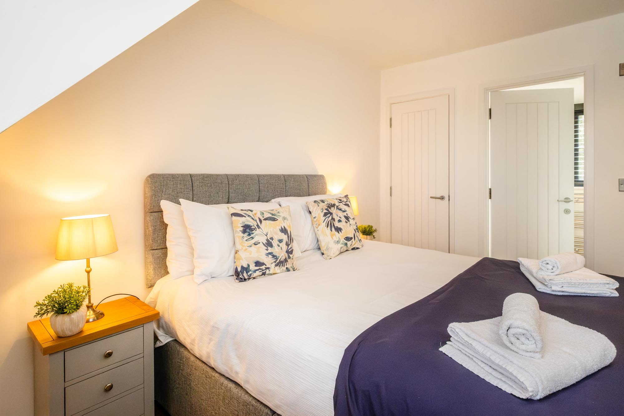 The first-floor features two double bedrooms (out of which one can be twinned) and a family bathroom. A further staircase leads to the second floor and is dedicated to an en-suite master bedroom. Outside features an enclosed patio area – ideal for al fresco dining.