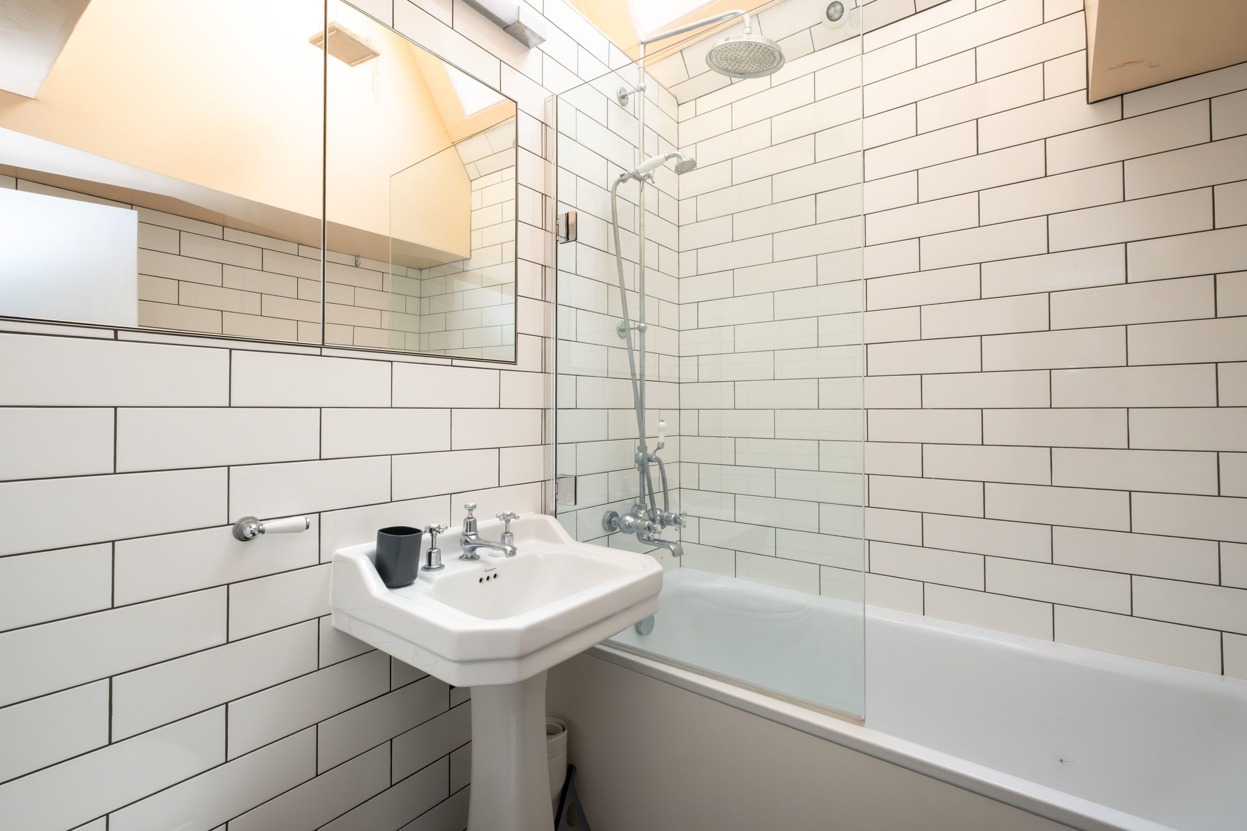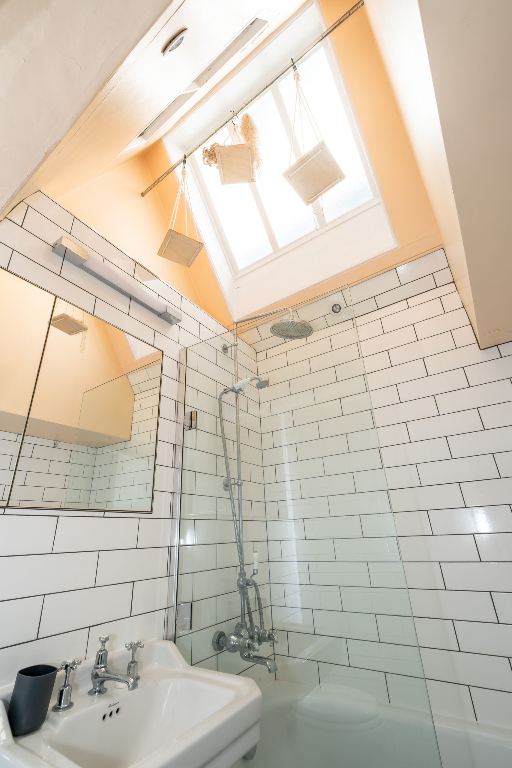 Family Bathroom: Bath with shower over, washbasin and WC