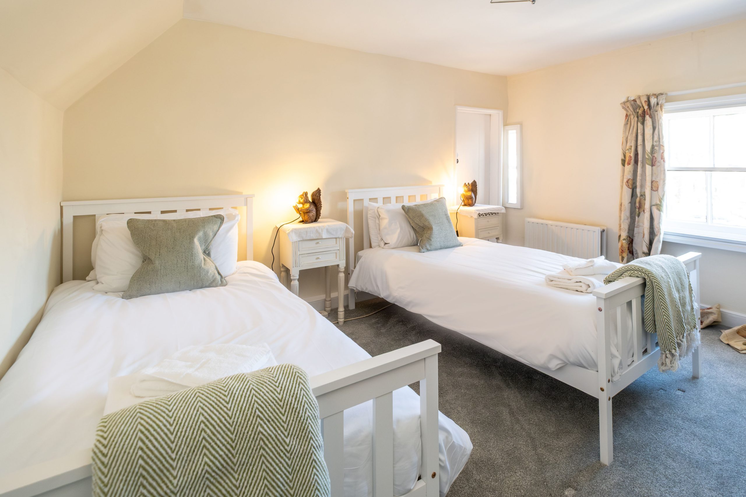 Bedroom 2: Twin beds (Please note: The stairs are steep and winding up to this second bedroom)